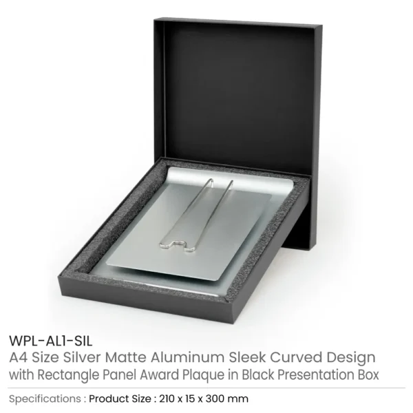 Elegant A4-sized aluminum award plaque with an elevated A5 front panel and built-in stand. Ideal for recognition events, it offers a premium finish and supports sublimation and UV DTF printing. Packaged in a black hard box with a foam insert for a classy presentation.