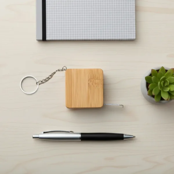 Experience functionality and eco-friendly design with our Bamboo Retractable Measuring Tape Keychains. Made from sustainable bamboo and durable metal, this compact, square-shaped tape measure extends up to 1 meter (39 inches) and features a smooth, retractable mechanism. With a lightweight design and a 25 mm diameter keyring, it’s convenient to carry anywhere — perfect for everyday use, promotional giveaways, and corporate branding. Packaged in a brown kraft carton box with a one-color imprint, this bamboo tape keychain combines sustainability and practicality in a compact design.