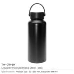 Double-wall SS insulating vacuum flask with twist-off lid and carry handle, 800ml Capacity.